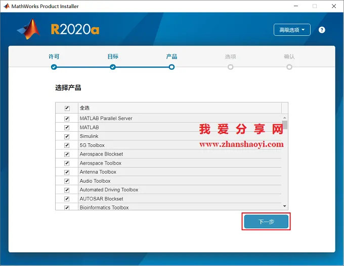 8.选择安装程序,默认全选,点击【下一步】