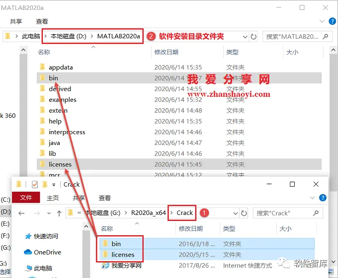 14.将bin和licenses文件夹全部复制粘贴到软件安装目录(见第7步)中替换原文件夹
