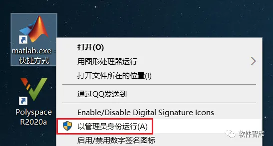 17.返回电脑桌面,找到Matlab图标,鼠标右击选择【以管理员身份运行】