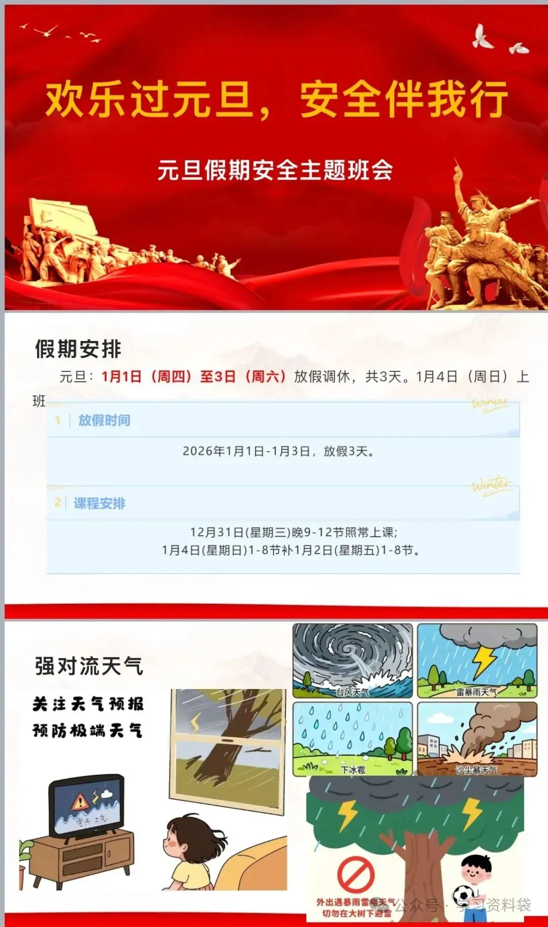 元旦 3 天小长假将至,安全是快乐过节的前提!这份 “欢乐过元旦,安全伴我行” 主题班会 PPT 绝对是老师和家长的必备好物,免费下载即可使用~