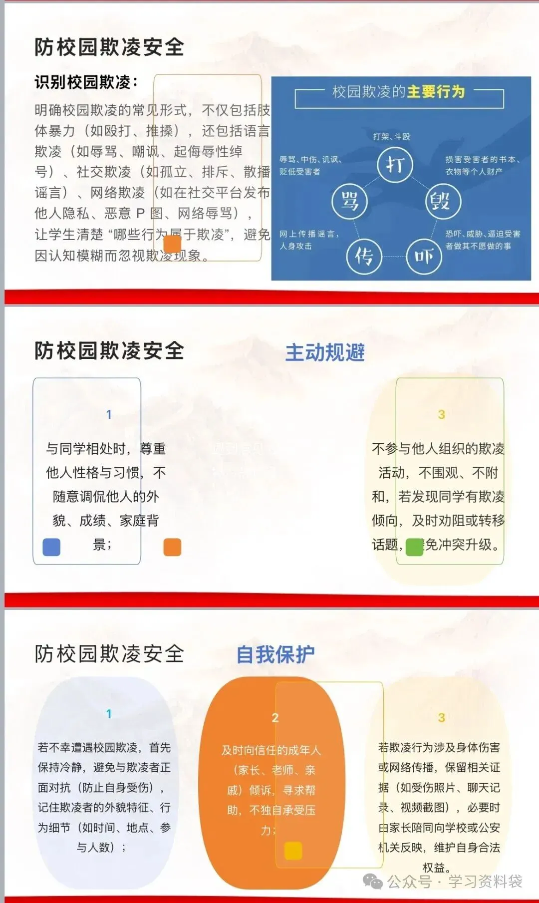 内容贴合学生生活实际,既有具体操作指南,又有案例提醒,搭配清晰分类和实用小贴士,讲解起来轻松易懂。无论是班会课集中宣讲,还是家长引导孩子自主学习,都能帮助学生树立安全意识,掌握避险技能。