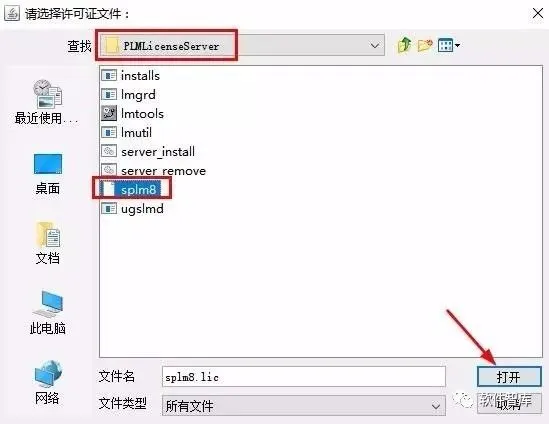 15.打开路径UG11.0 64bit\破解文件\PLMLicenseServer,选择splm8,点击【打开】