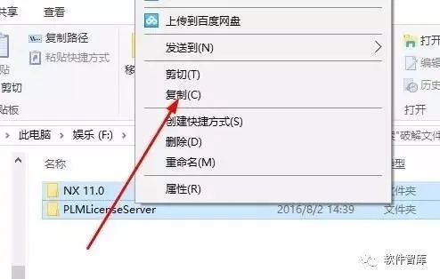 29.复制安装包中UG11.0 64bit\破解文件里面的两个文件夹,NX11.0和PLMLicenseServer