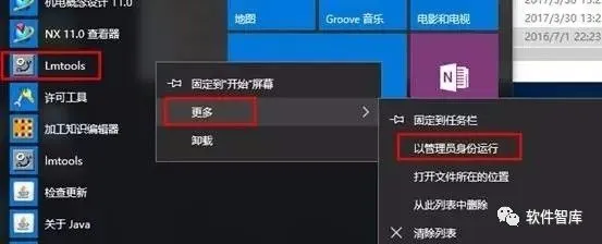 31.在计算机“开始”菜单中找到Lmtools图标,鼠标右击→更多→以管理员的身份运行
