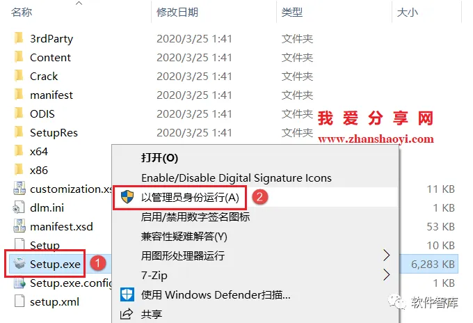 2.找到Setup.exe,鼠标右击选择【以管理员身份运行】
