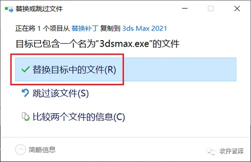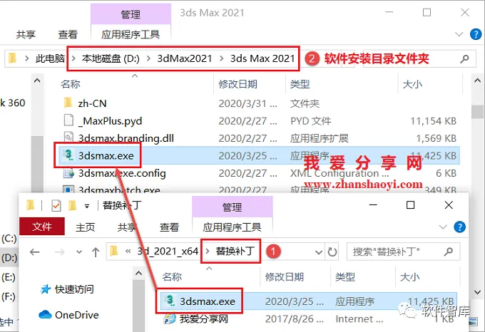 11.找到3dsmax.exe,将其复制粘贴到软件安装目录(见第5步)中3ds Max 2021文件夹下替换原文件