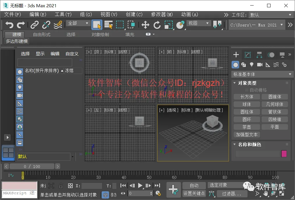 17.打开3dMax2021软件,中文版界面如下: