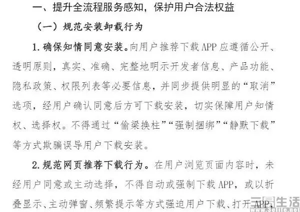 针对这些乱象,工信部日前也出手了。近日,工信部公开征求对《工业和信息化部关于进一步提升移动互联网应用服务能力的通知(征求意见稿)》的意见。其中提出,在用户浏览页面内容时,未经用户同意或主动选择,不得自动或强制下载APP,或以折叠显示、主动弹窗、频繁提示等方式强迫用户下载、打开APP,以及除基本功能软件外APP应可便捷卸载,不得以空白名称、透明图标、后台隐藏等方式恶意阻挠用户卸载。