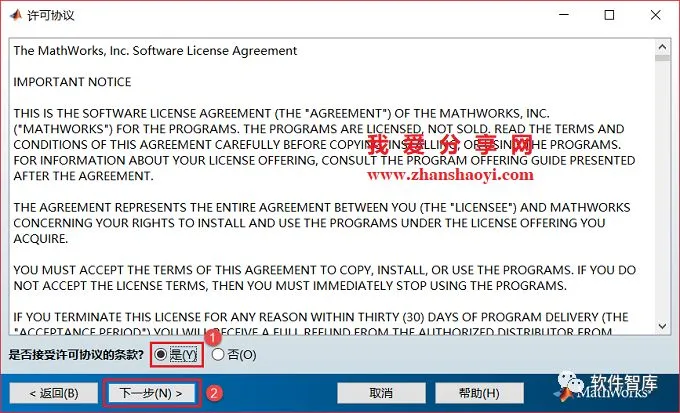 5.许可协议界面,勾选“是”,然后点击【下一步】