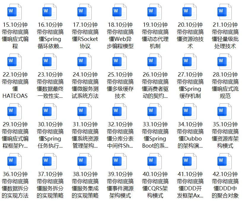 资料内容涵盖了分布式架构、高并发场景、JVM性能调优等企业级解决方案的核心要点,并包含AI应用等前沿趋势的解读。其中还融入了大厂的场景真题和系统设计案例,帮你更从容地应对技术评估,并将技术能力转化为实实在在的职场竞争力。
