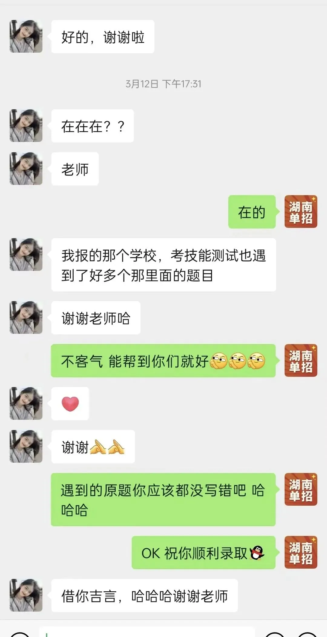 湖南各单招院校考前精准押题 【内部资料】添加领取👇 需要的同学添加以下其中一位老师即可👇 |