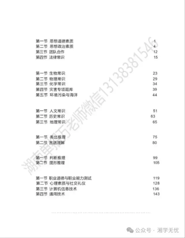 今年必考:信息技术、通用技术、社会常识、时事政治、思想品德素质、科学素质、人文素质、综合素质、判断推理等全部包含。