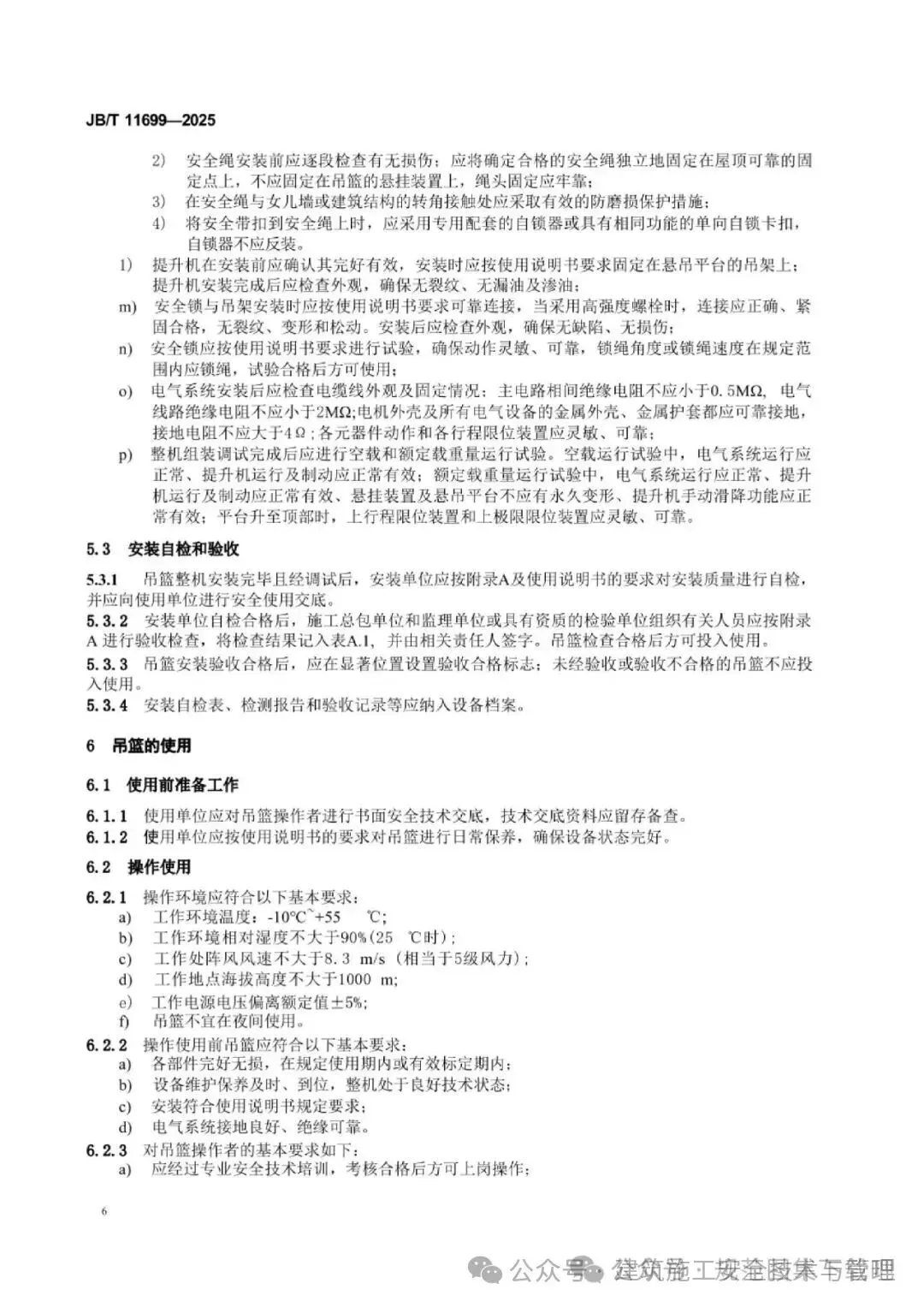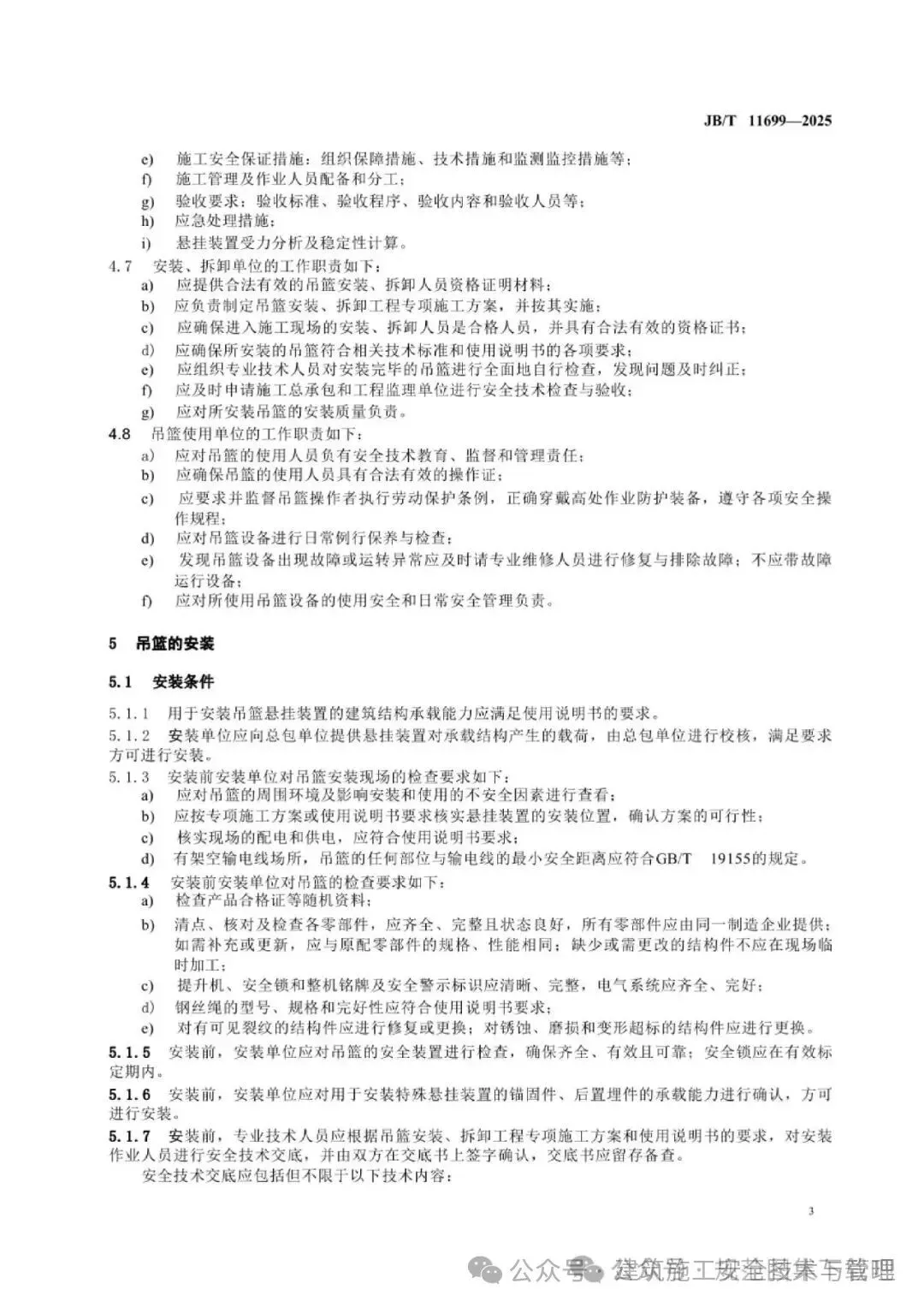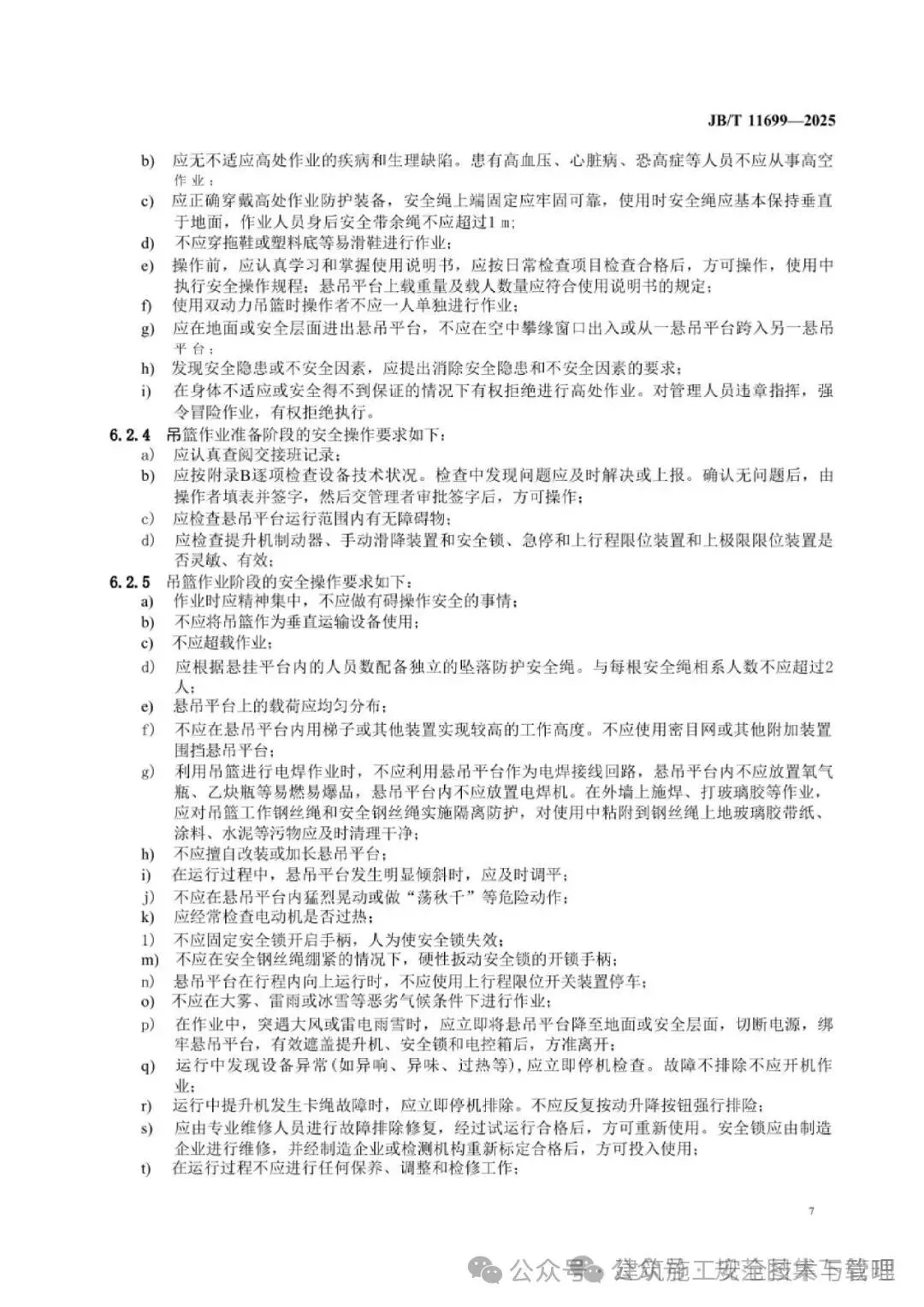 JB/T 11699-2025是新时期高处作业吊篮安全管理的权威指南。对于工程各方而言,建议你: