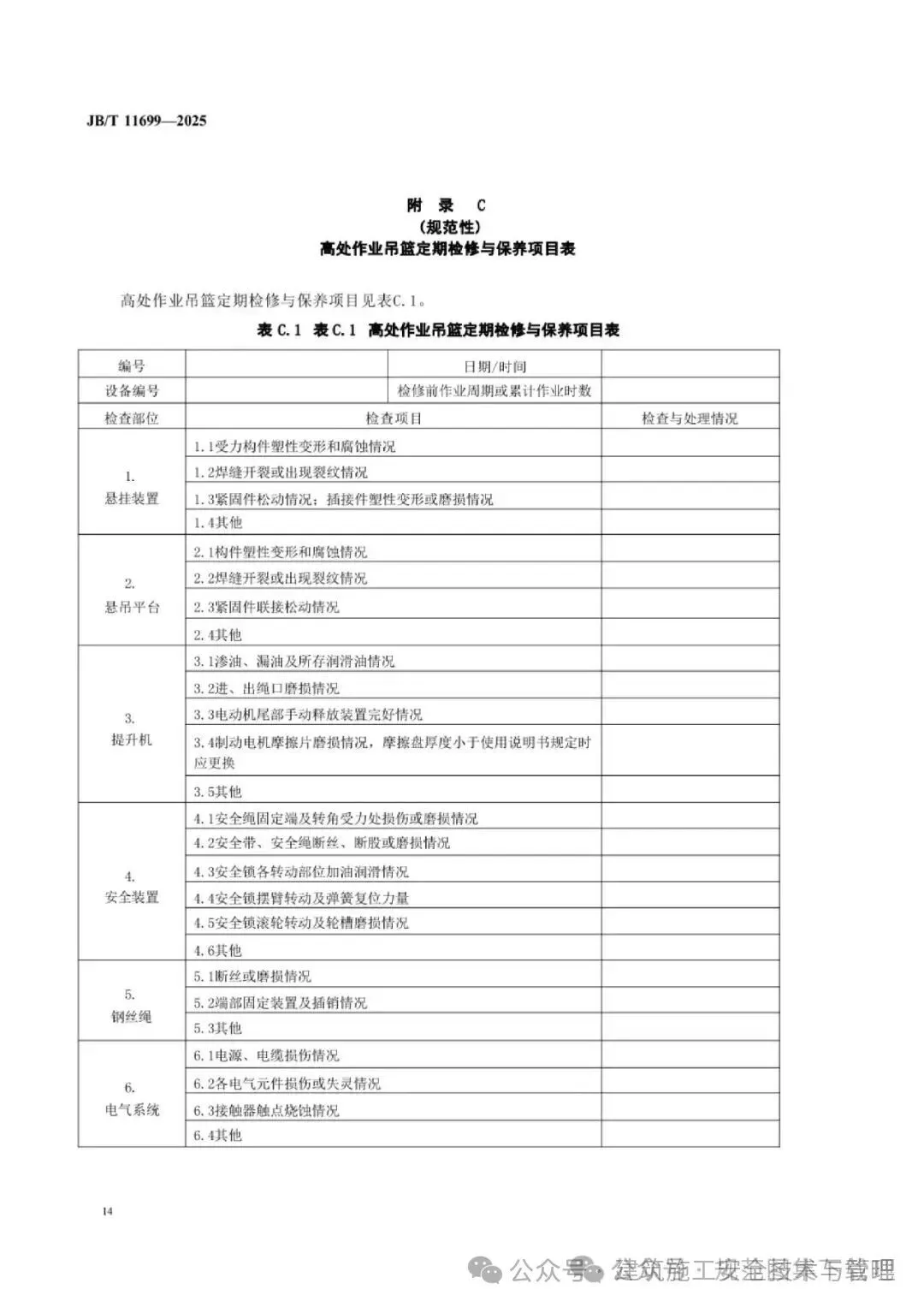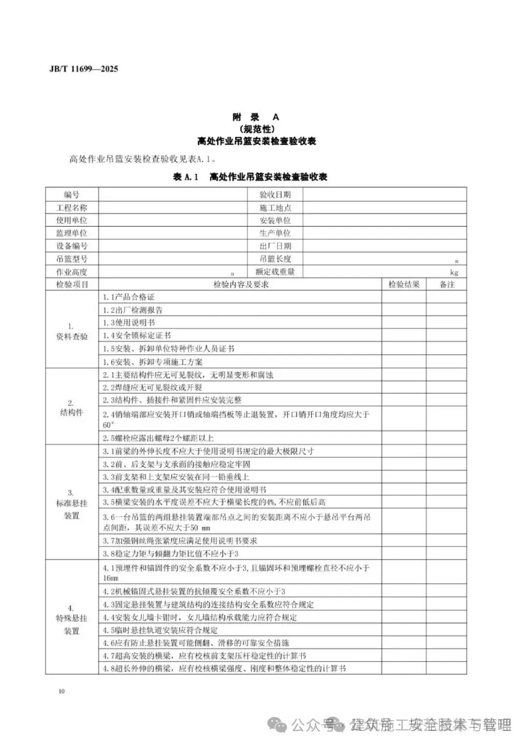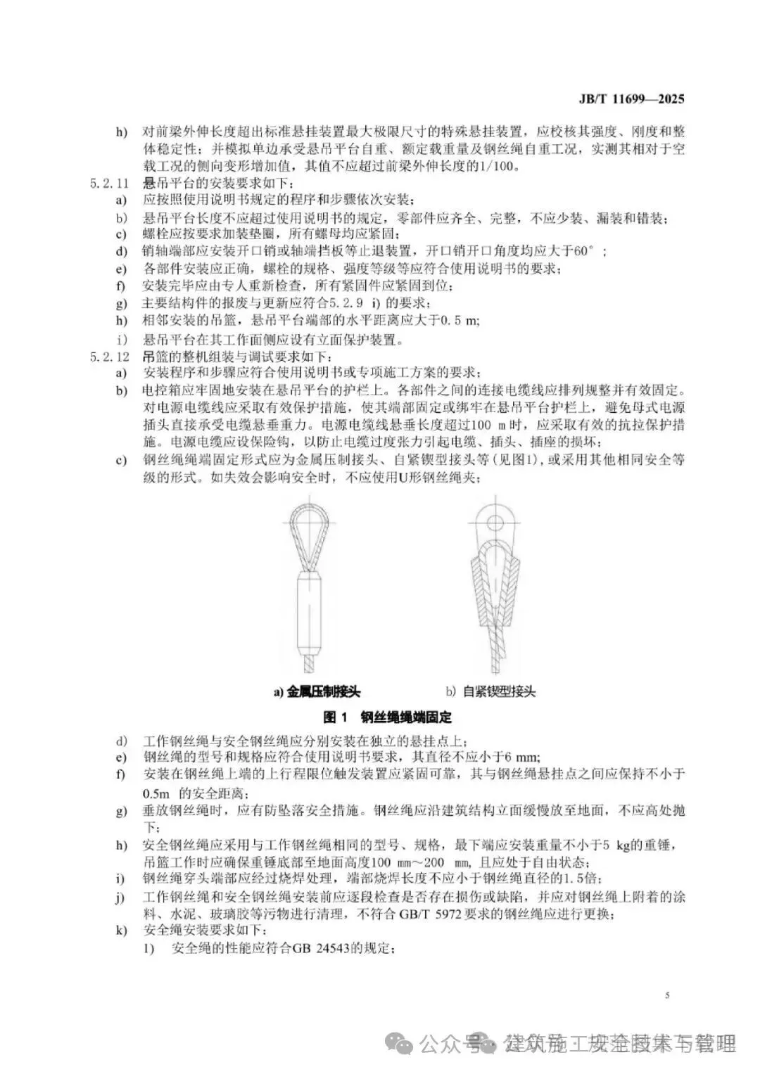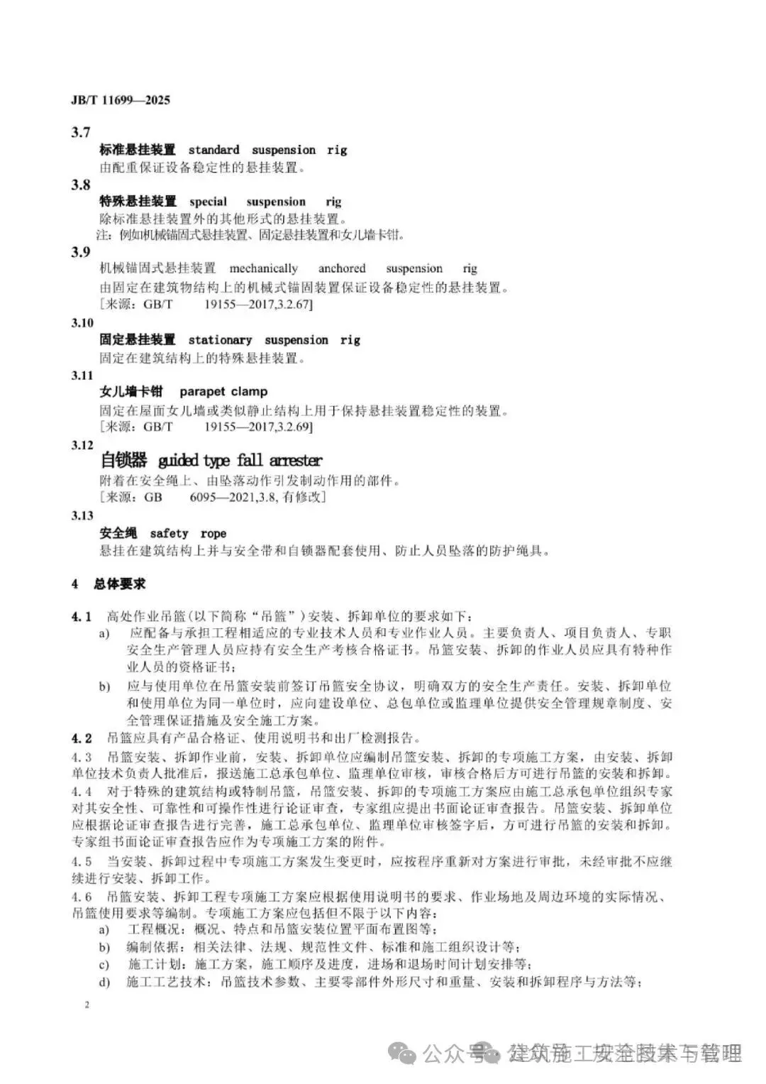 JB/T 11699-2025是新时期高处作业吊篮安全管理的权威指南。对于工程各方而言,建议你: