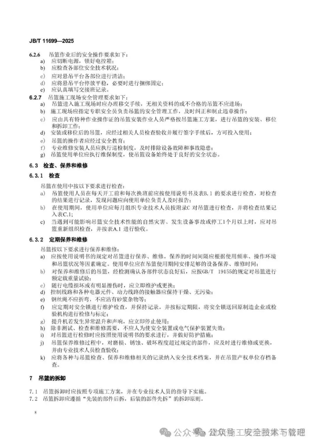 ☞JB/T 11699-2025 高处作业吊篮安装、拆卸、使用技术规程.pdf☞点击文末“阅读原文”免费下载