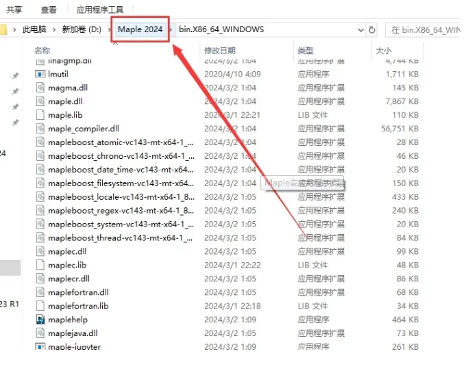 2. 选择【Maple2024.0WindowsX64Installer.exe】,右键以管理员身份运行。