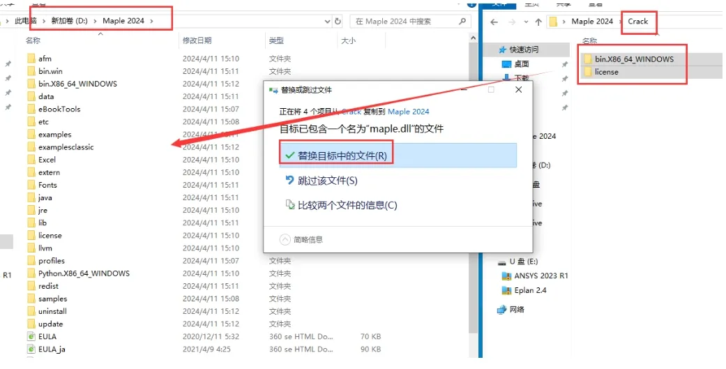 15. 将安装包【Crack】文件夹里的所有破解文件复制到刚才后退的安装目录下替换。