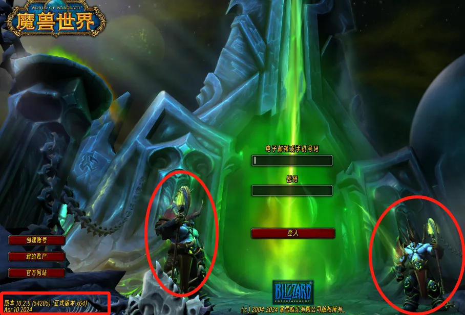 第一个信息是左下角的版本号为10.2.6版本,也是目前正式服最新版本,并且下面的日期也是2024年4月10日,也就是说在网易和暴雪官宣的同时,国服登录器界面就已经做好了。