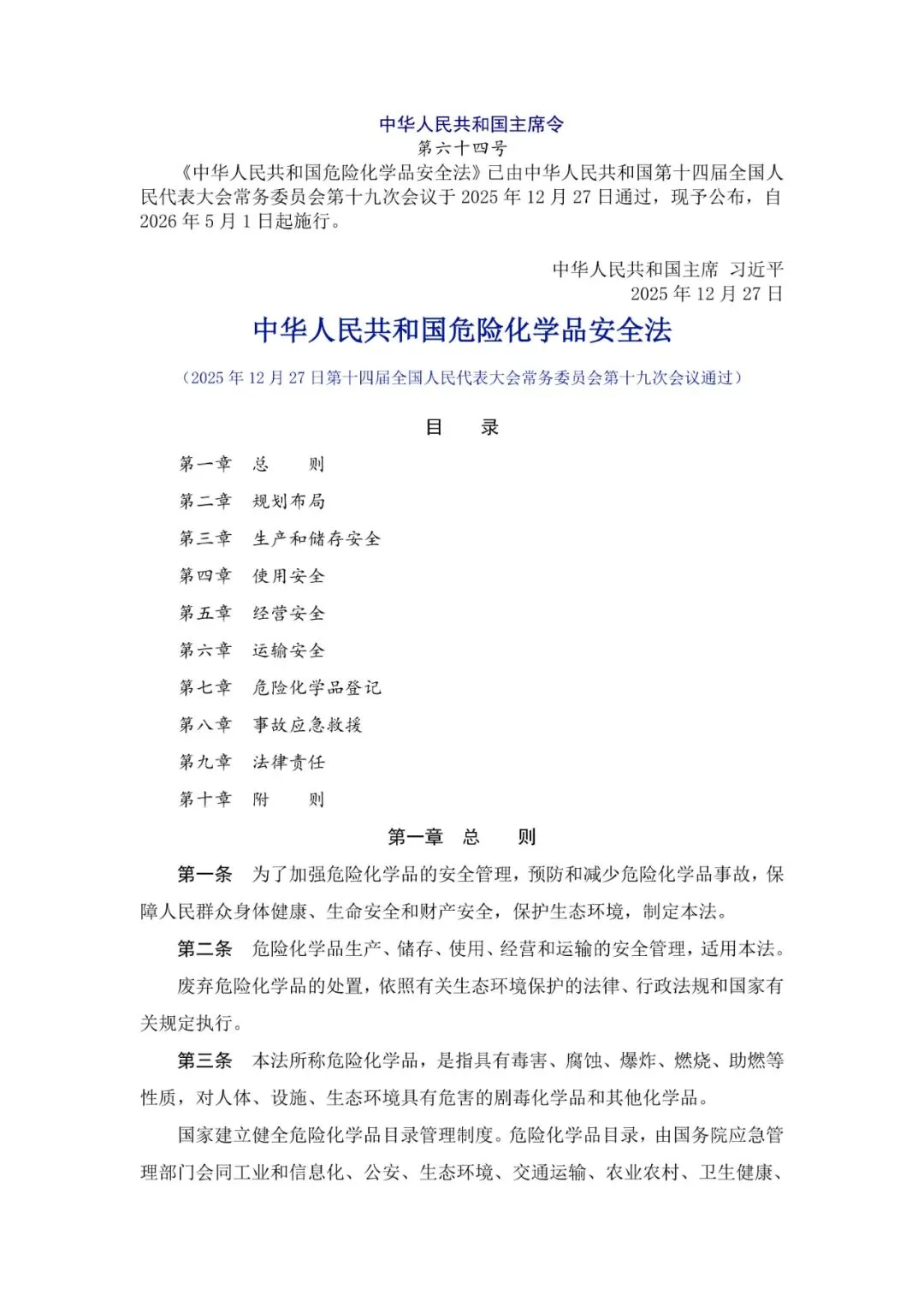 《中华人民共和国危险化学品安全法》