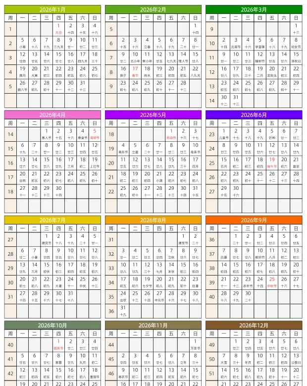 >2026年日历计划表模板合集 (免费下载打印)