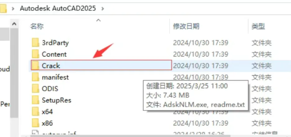 打开刚才解压出来的文件找到Crack文件夹双击打开。