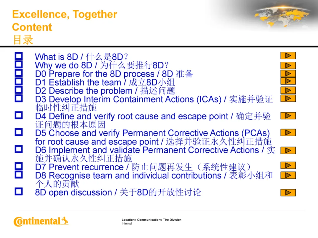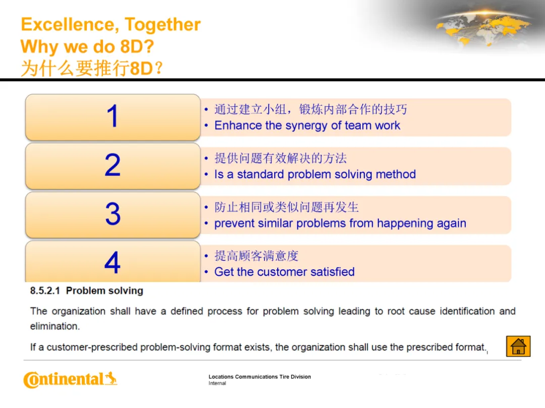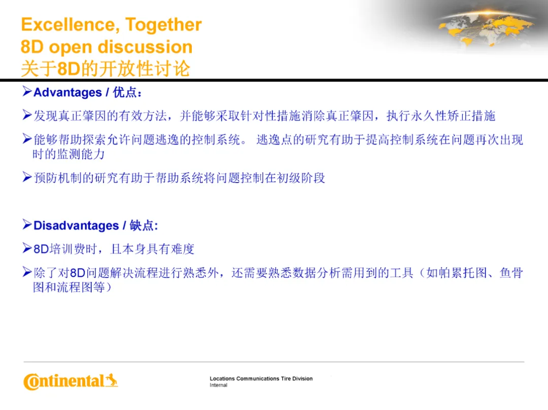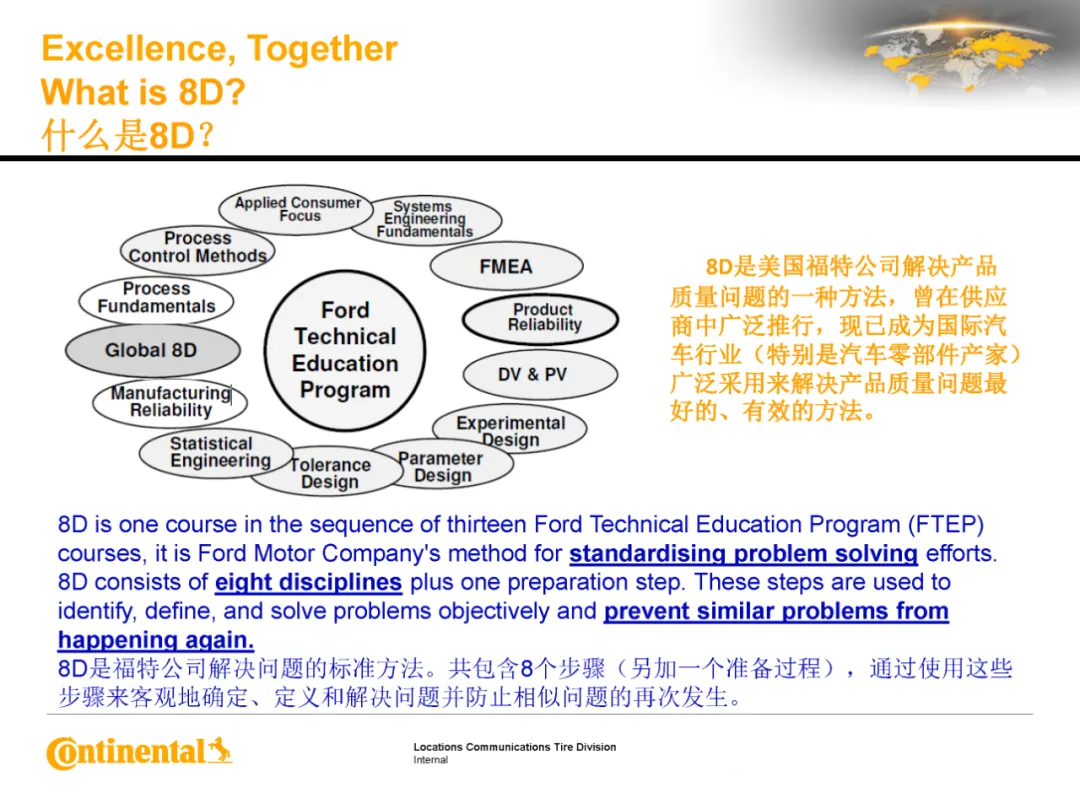 8D问题解决法是在汽车产业、组装及其他产业中,利用团队方式结构性彻底解决问题时的标准作法。下面这份马牌合肥工厂的培训材料,分享给大家学习!