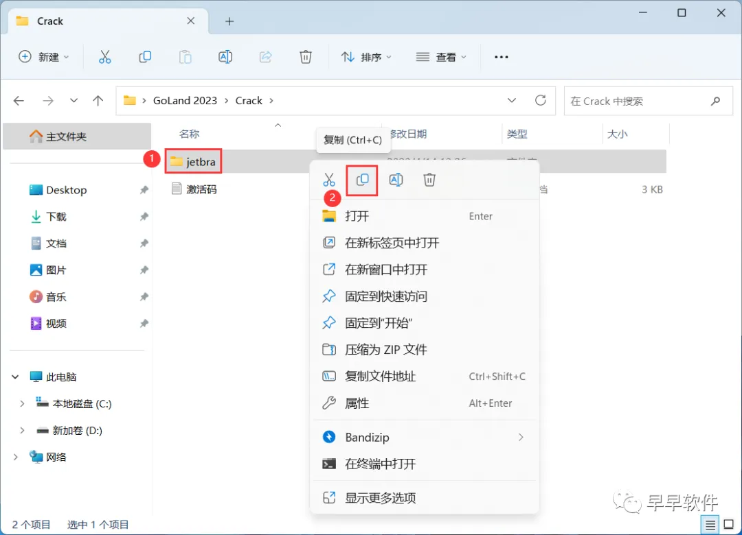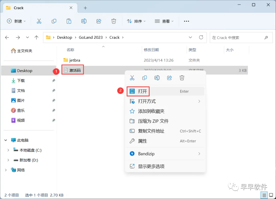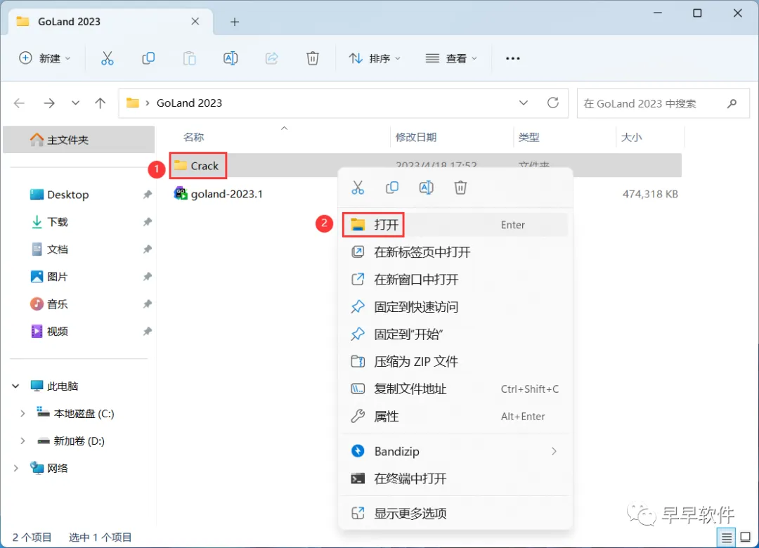 10、回到GoLand 2023文件夹,找到【Crack】文件夹,右键【打开】它