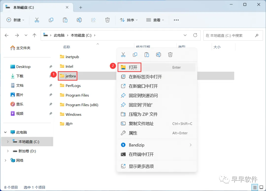 13、找到粘贴的【jetbra】文件夹,右键【打开】它
