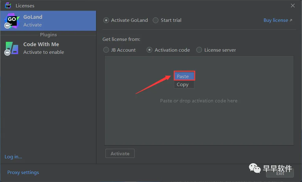 24、回到软件界面,右键Activation code下的空白处,点击【Paste】