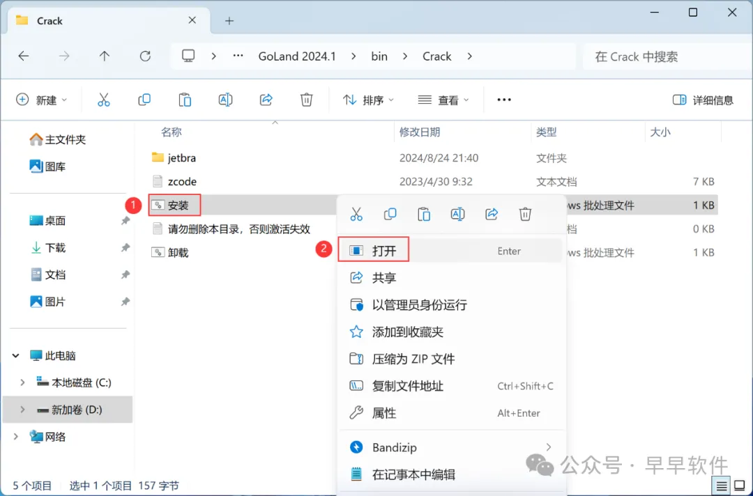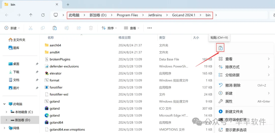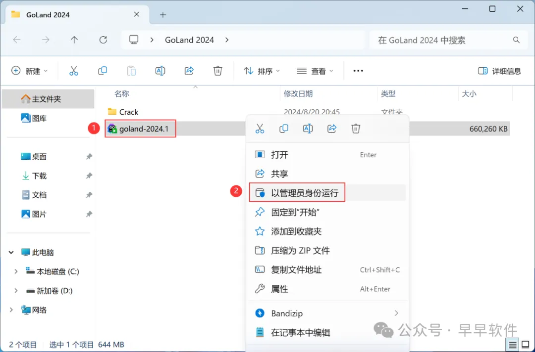 1、下载GoLand 2024软件安装包到电脑上,右键选择【解压到GoLand 2024\】
