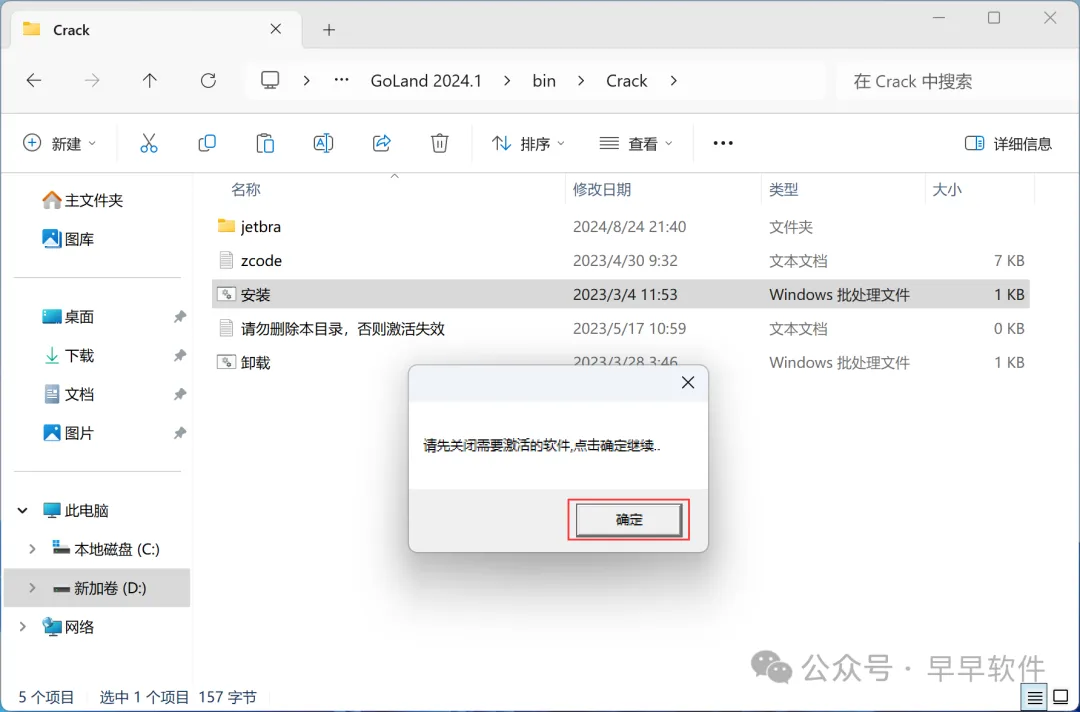 10、回到GoLand 2024文件夹,找到【Crack】文件夹,右键点击【复制按钮】