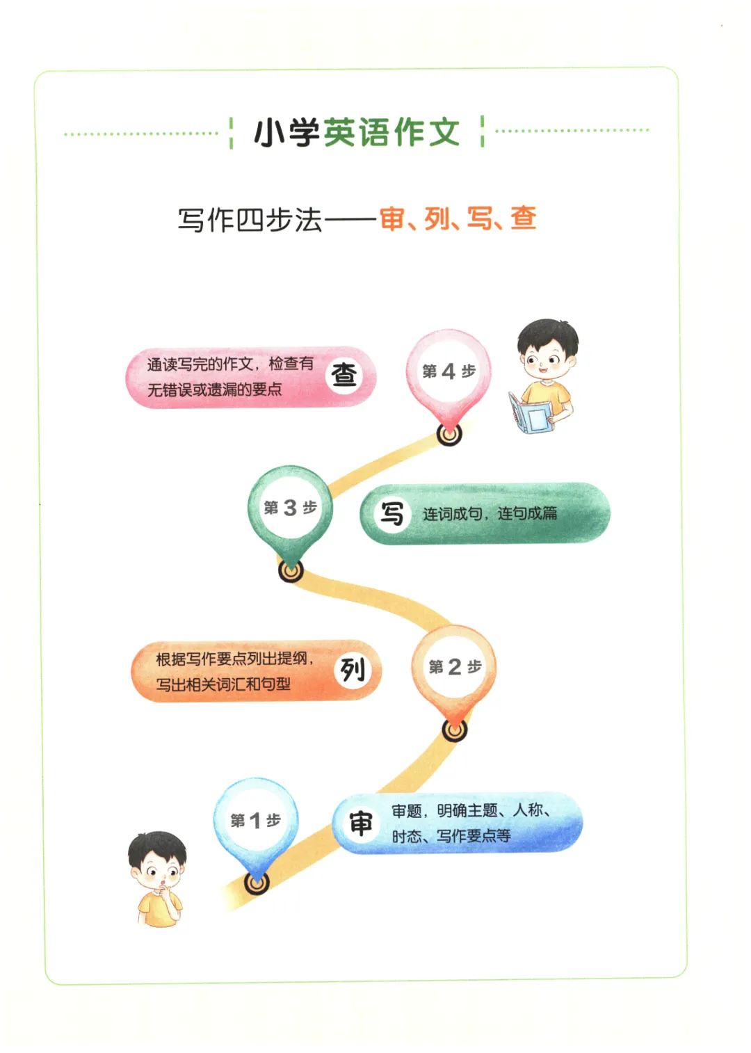 今天给大家分享的是小学生英语写作技巧,电子版可下载。无套路,欢迎收藏和下载。如果觉得这份资料不错,建议分享到班级群/年级群,让其他家长打印出来,帮助孩子学习;
