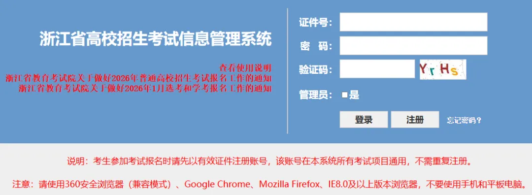 注意:请使用360安全浏览器(兼容模式)、Google Chrome、Mozilla Firefox、IE8.0及以上版本浏览器,不要使用手机和平板电脑。