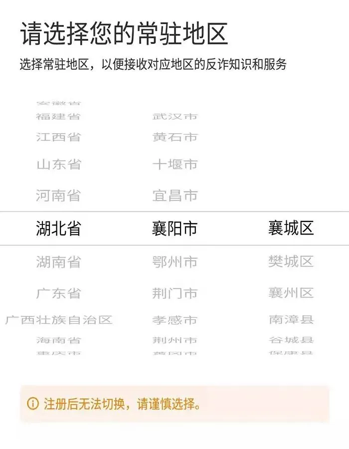 2. 下载APP后,选择您所在地区进行注册。
