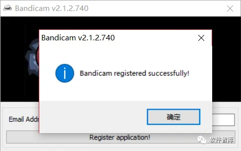 12.弹出提示registered successfully,破解成功了,点击【确定】