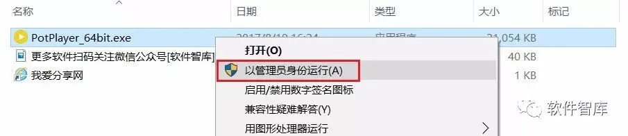 1.根据自己电脑系统的位数使用“百度网盘客户端”下载对应的PotPlayer软件安装包,并解压缩,然后找到PotPlayer_64bit.exe,鼠标右击选择【以管理员身份运行】