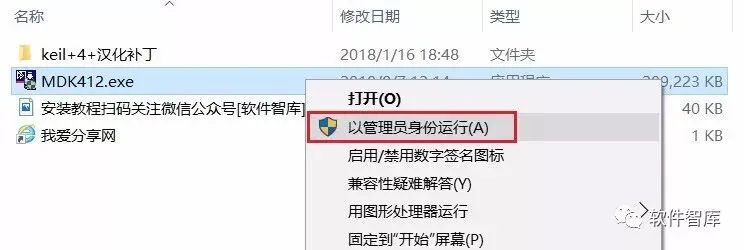 1.使用“百度云客户端”下载Keil4软件安装包(含破解文件),并解压缩,安装前先断开电脑网络,然后找到MDK412.exe,鼠标右击选择【以管理员身份运行】