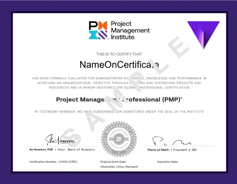 新版PMP证书示例
