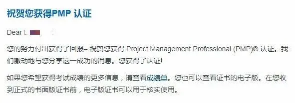 当你的PMI注册邮箱中,收到一封PMI发来的邮件,标题为“祝贺您获得PMP认证”时,那么恭喜你,表明你顺利通过了PMP考试!