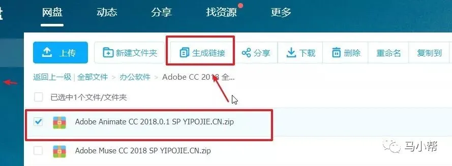 打开百度网盘内容,勾选需要下载的内容。在上方菜单栏会出现,"生成链接"的按钮。