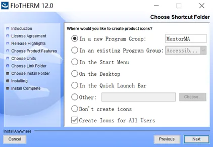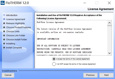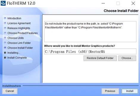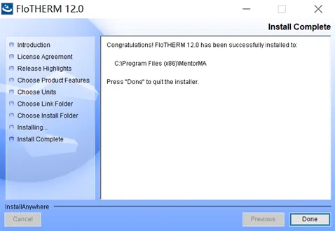 软件的安装没什么花头,双击flotherm_install_12.0.exe运行,按照提示要么选“是”,要么“确定”、“下一步”等等,直到最后点“Done”完成安装。