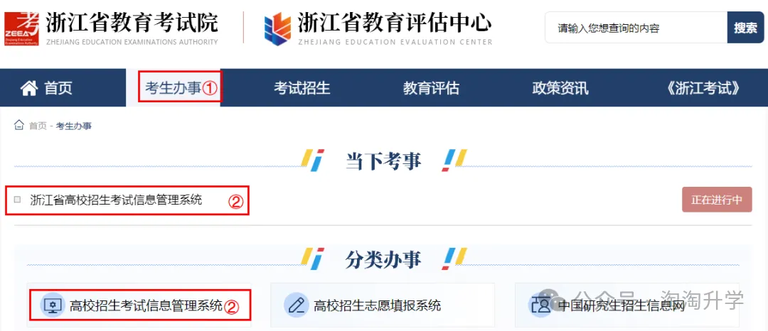 准考证什么时候有?这几天高三学生家长询问这个问题。考前5天左右,各报名点学校开始打印考生准考证,并在考前3天发到班主任手中,考生可以直接向班主任老师领取。如果家长有提前需要的,可联系班主任询问。考前3天(1月3日)左右,预计浙江考试网站(www.zjzs.net)会向考生开通准考证下载打印功能。考生家长登录考试院账号后,可以自行下载准考证PDF文档,用A4纸打印,跟学校发的准考证一样,可以多几张备份。打开浏览器,输入www.zjzs.net,进入浙江省教育考试院网站,点击“考生办事”进入如下页面: