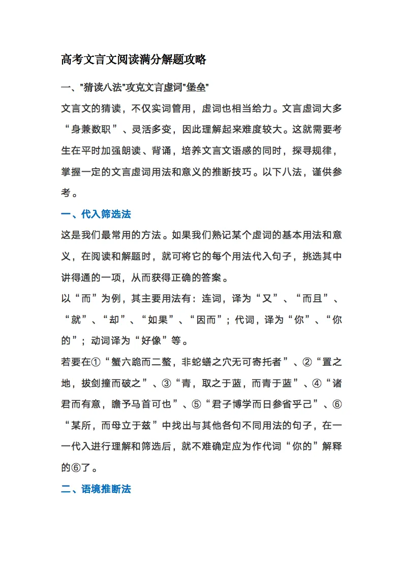 我用夸克网盘分享了「【文言文】2023高考文言文阅读满分解题攻略.doc」,点击链接即可保存。打开「夸克APP」在线查看,支持多种文档格式转换。