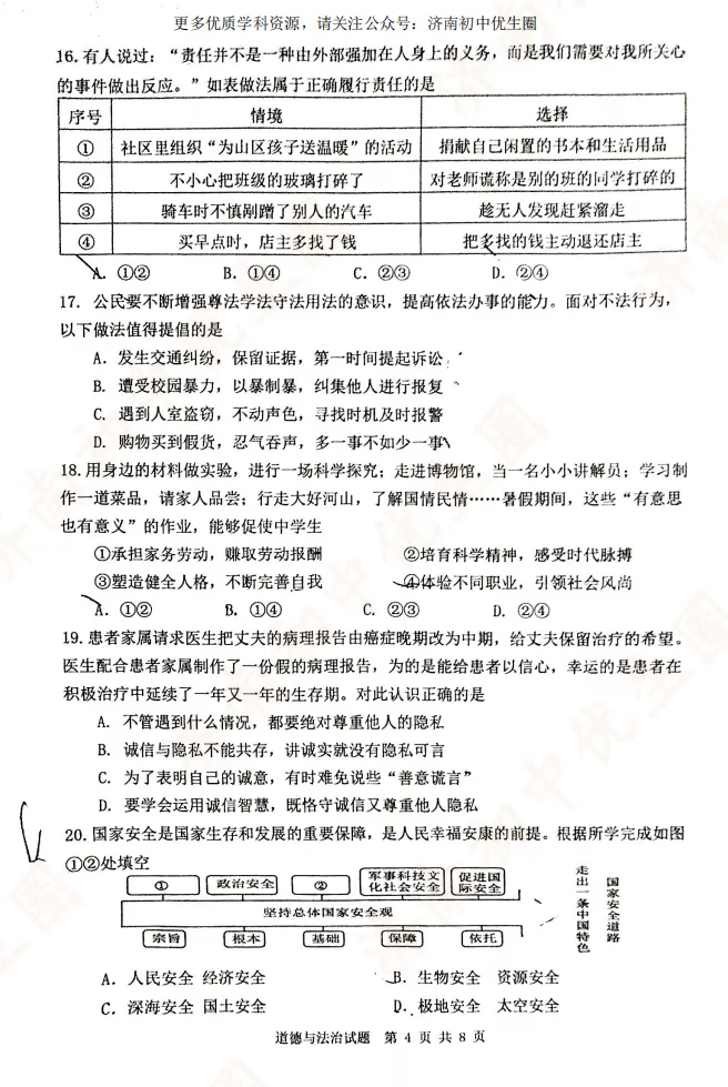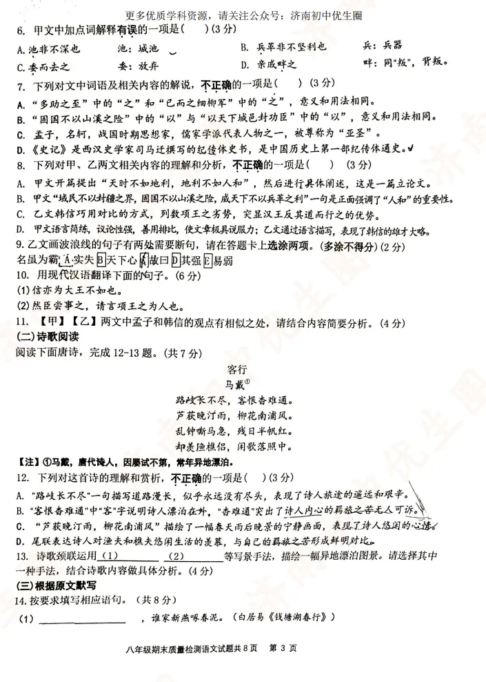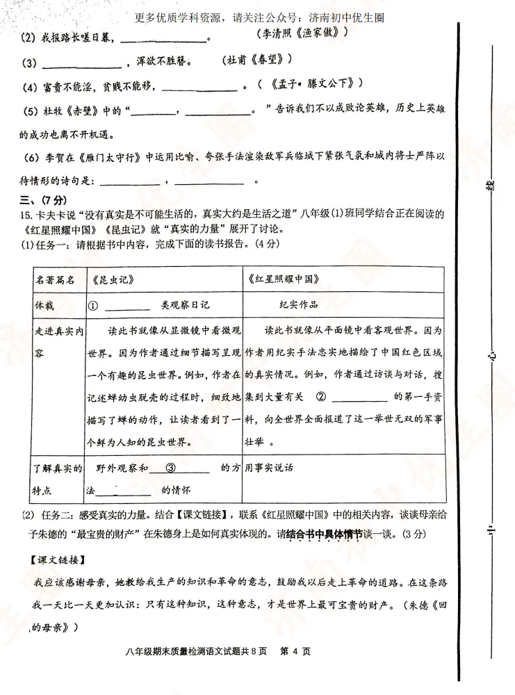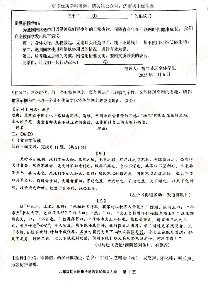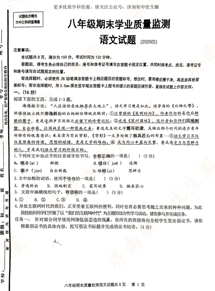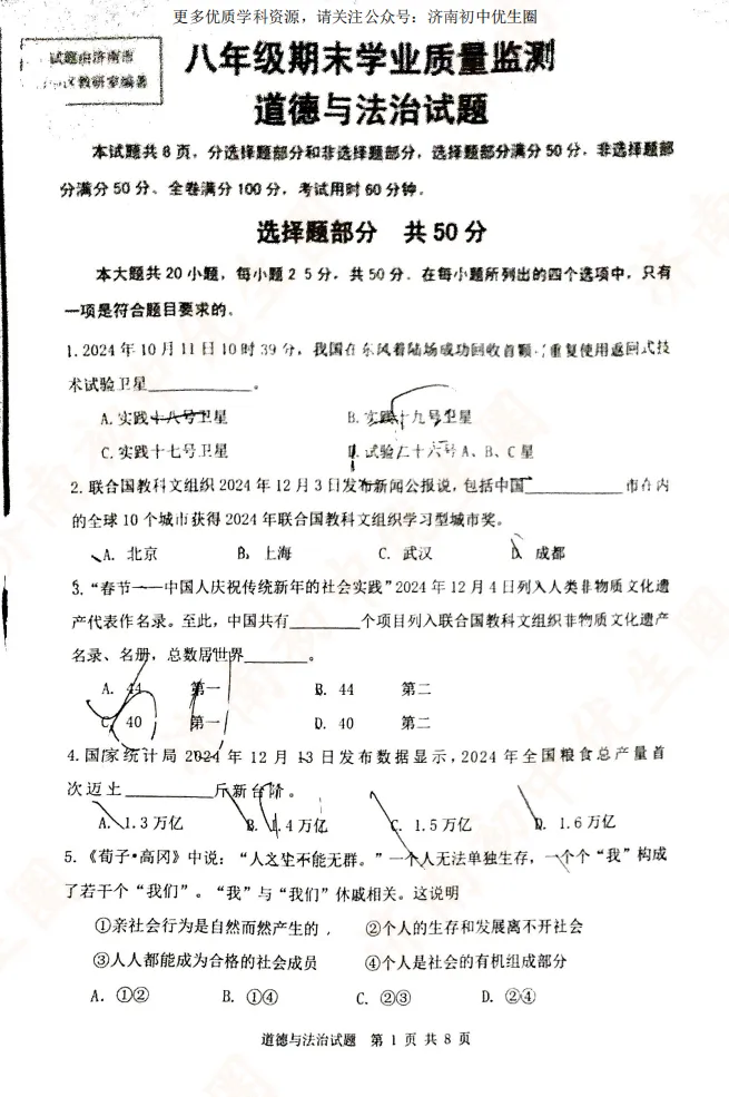 优生圈整理24-25学年市中区初二期末试题,获取完整版试题,可以扫描下方二维码领取。25-26学年期末试题将持续更新