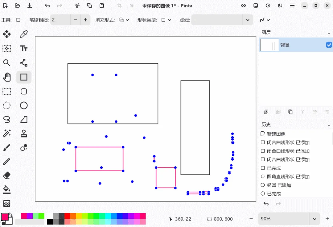 Pinta能同时处理多张图,支持图层和多标签页操作,编辑超方便。标尺功能多样,计量单位可选,还能放大图片至3600%,细节编辑不在话下。