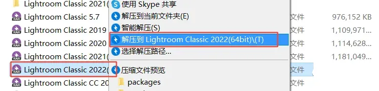 1.鼠标右击【Lightroom Classic 2022(64bit)】压缩包(Win11系统的用户先点击“显示更多选项”)选择【解压到 Lightroom Classic 2022(64bit)】