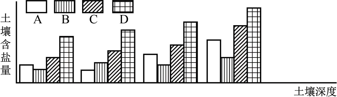 (3)科研人员利用生物治理当地盐碱化,种植了A、B、C、D四种树,用哪种树效果最好()(单选)