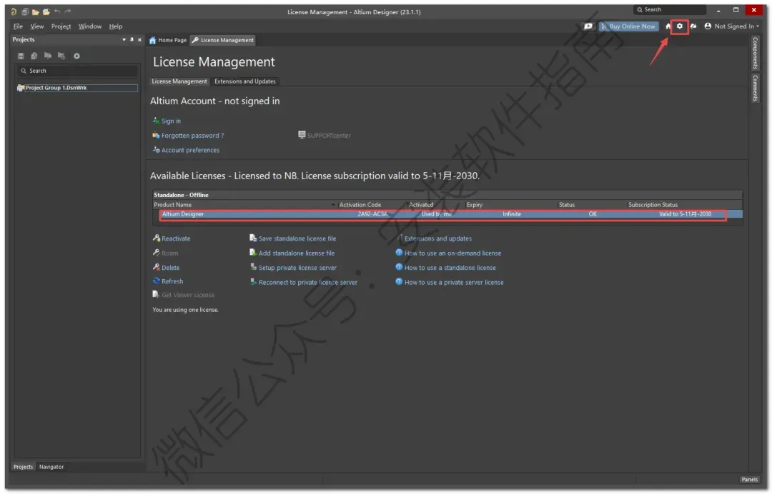 19、如下图所示试用期到2030年说明激活成功,点击右上角的“设置图标”
