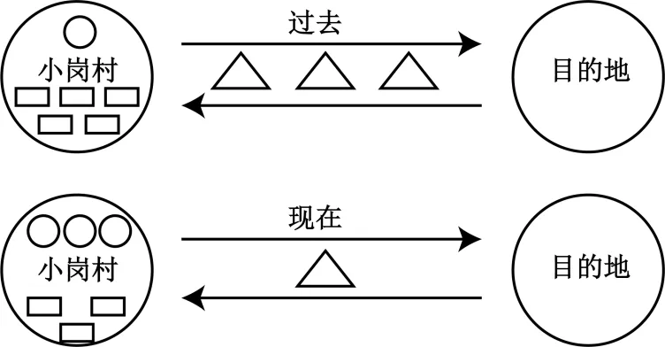 (5)在小岗村发展改革的过程中,根据推拉效应,以下示意图可以代表当时的人员流动情况,〇、口、△分别代表什么()(单选)