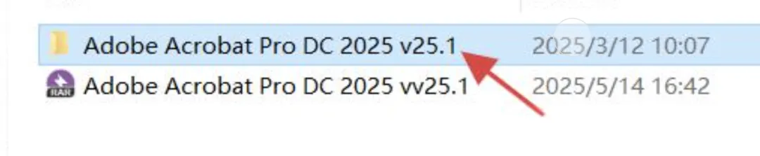 2、打开文件夹: 双击打开解压后的文件夹:Acrobat Pro DC 2025。